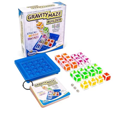 5歳から遊べる重力迷路パズル「グラビティ・メイズ」の入門版です。問題カードの指示に従い、球がゴールまで滑り落ちるようにタワーを配置してコースをプログラミングします。難易度4段階、全40問のチャレンジを通じ、遊びながら論理的思考力や立体的な想像力を養える、知育に最適なボードゲームです。