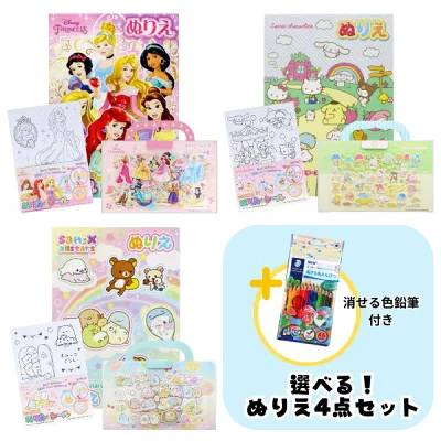選べるぬりえ4点セット(ぬりえ・シール・色鉛筆・消しゴム)