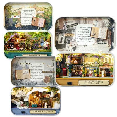 手作り ミニチュアハウスキット ドールハウス 缶ケース DIY BOXTHEATRE