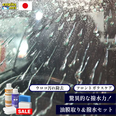 窓ガラスの油膜・水垢(ウロコ)を徹底的に除去し、強力な撥水コーティングを施すセットです。フロントガラスや窓ガラスの視界を回復させ、フッ素コートで長期間の撥水を維持します。