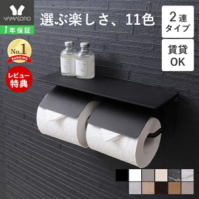 ヴィンテージからモダンまで、トイレの雰囲気を格上げするスタイリッシュな2連式ホルダーです。天板には天然木や大理石柄を採用し、小物を置ける飾り棚として活用可能。既存のホルダーのネジ穴を活かせる「後付け設計」なので、壁の傷を最小限に抑え、DIY初心者でも簡単に取り付けができるのが魅力です。
