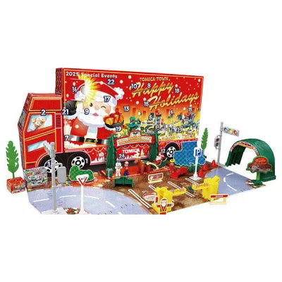 12月1日から24日まで、窓を毎日開けてクリスマスをカウントダウンするトミカの限定カレンダーです。箱がアドトラック型になっており、開くとアドトラックイベントがテーマのプレイマップが広がります。スペシャルトミカのクリスマスラッピングカー2台付き。トミカタウンが完成し、別売りの情景パーツとも遊べます。(2025年限定生産)
