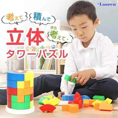 子どもの「成長実感」をコンセプトにした知育玩具。立体パズルを組み合わせ、タワーを完成させます。4段階・40通りに設定された問題にチャレンジすることで、遊びながら思考力、空間認識能力、集中力を育みます。長く遊べる工夫と、達成感を得られる設計が特徴です。