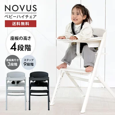 モダンなインテリアにも馴染むスタイリッシュなデザインのベビーチェア。高さ調整機能付きで、ダイニングテーブルに合わせやすく、お子さまの食事やお座りに安心感を提供します。